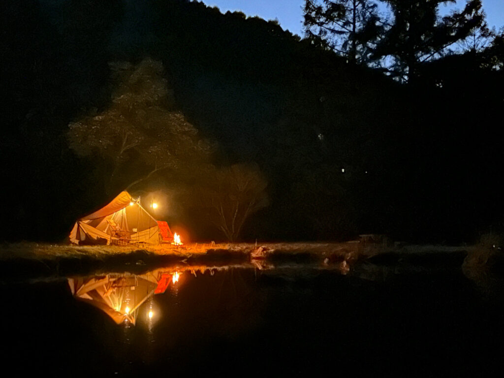 穏やかな池の辺りで1日限定3組の特別感が味わえるサイト